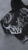 "Black Spine" is 400GSM of heavyweight cotton menace. Jet black, unevenly dyed like it`s been dragged through bad decisions. A skeletal snake coils across the hoodie, crawling over your body like it`s alive, alert, and absolutely judging everyone in your radius. A Death-metal lettering rips down the sleeve, the pouch flexes the identity label, and the ESMAD embroidery quietly says yeah, I know what I`m doing. Flip around and the woven back patch finishes the look like a signature on a warning label. Oversized, raw, and unapologetically dark: an armor for anyone who wants to flex with a little venom.