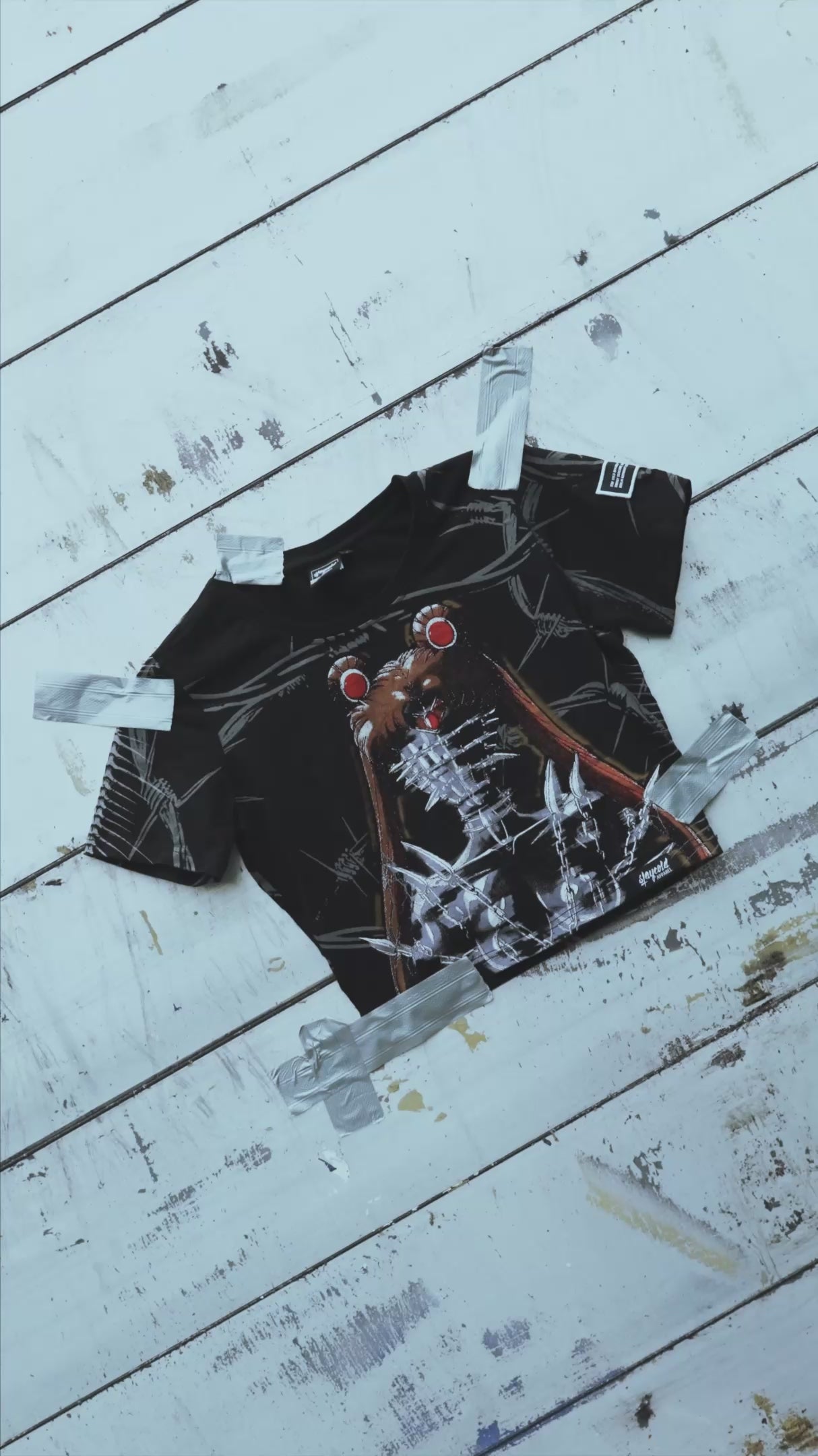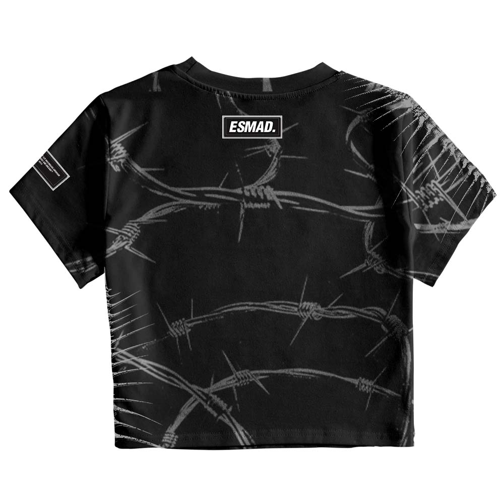 She’s no goddess - she’s the omen you didn’t see coming. “Moon Maiden” slashes through with barbed-wire grace, soaked in pain and manga madness, pulled straight from the blackest corners of your universe. Crafted by Maximilian Abraham himself, this top fuses lunar punk with raw, unfiltered edge. A cosmic meltdown tattooed on fabric: twisted manga art tangled in razor-sharp barbed wire, screaming from every inch. Custom patches front and back lock in the menace, while 200GSM 100% cotton keeps it soft enough to wear-but sharp enough to warn. - Feel cute, might emotionally spiral later.