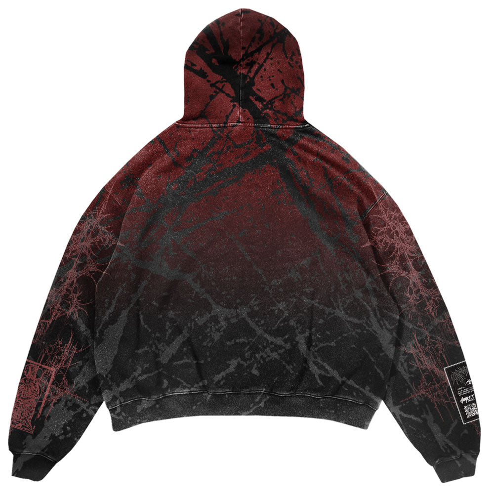 The "Oathbound" Hoodie isn`t just worn - it`s invoked. Designed by Maximilian Abraham, this piece bleeds from crimson chaos into pitch black, like a pact sealed in fire. With every thread soaked in intensity, the bold prints across the front and sleeves carves your presence into the world like a ritual mark. Built from our upgraded 400GSM fabric, 65% cotton, 35% polyester - it`s soft enough to haunt in and heavy enough to withstand the weight of your own legend. The clean-edge custom patch on the sleeve seals the deal like a final vow: No fear. No mercy. No gods - just the oath you make with yourself.