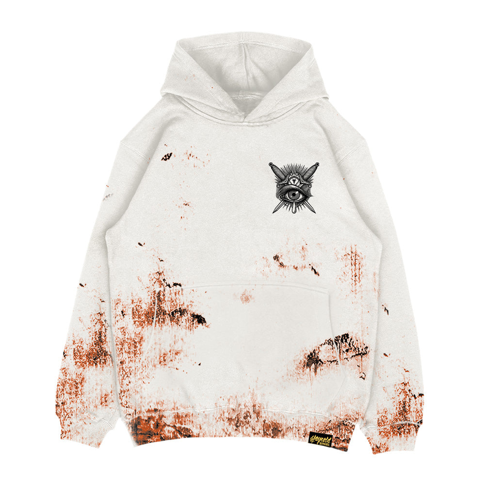 The "Think Twice" Heavy Oversized Hoodie is your go-to piece when comfort meets confrontation. Created in collaboration with tattoo artist @burpi_brebzy, this shirt features the signature "Think Twice" design, now reimagined on a gritty rust-stained printed base that looks like it`s been through hell and came back cooler. Made from 350GSM 100% cotton, it brings serious structure and softness. The fit keeps you chill. Because staying loud doesn`t mean sacrificing comfort.