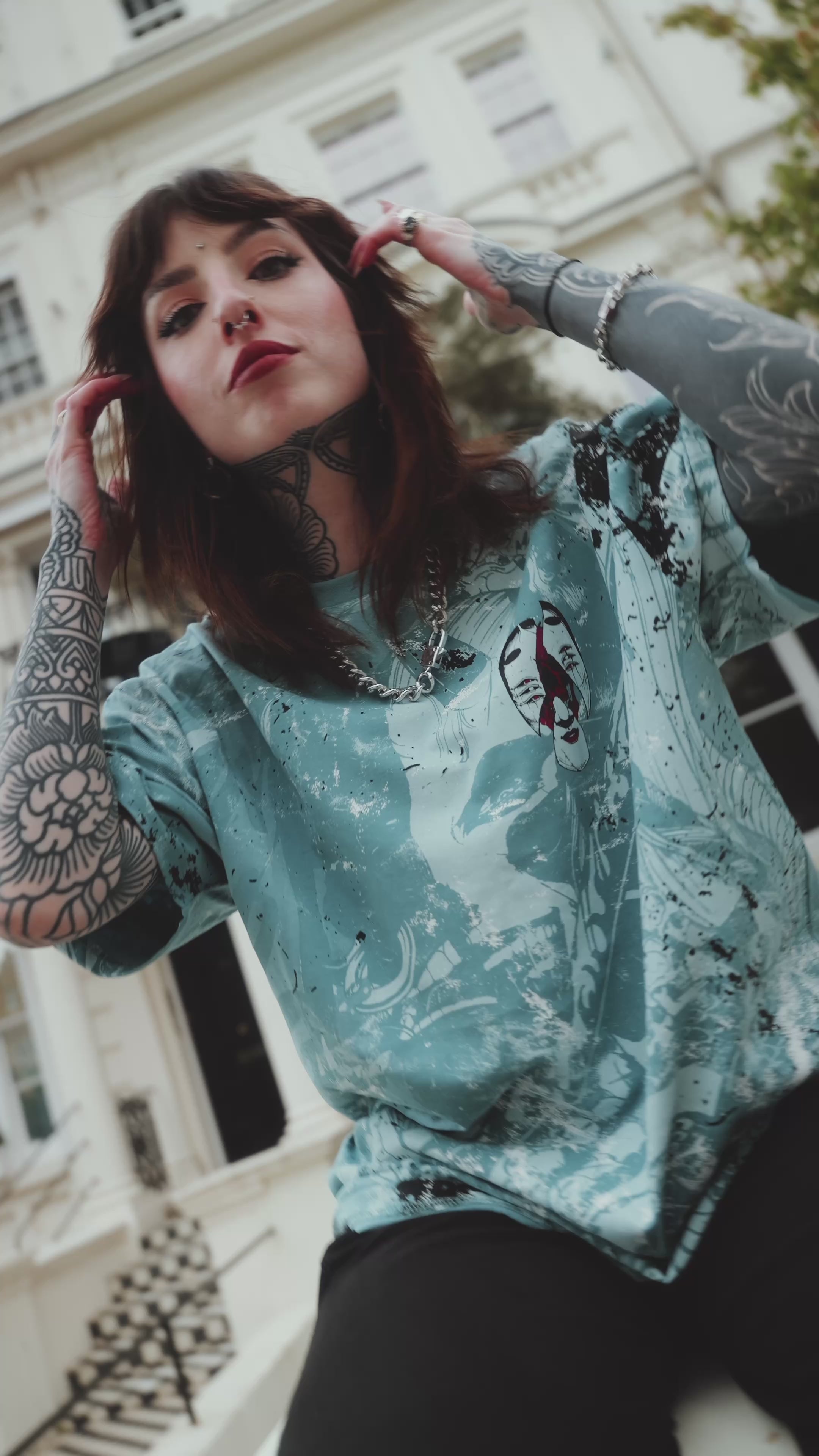 Wear your defeated enemies like jewelry, because Fashion Kill isn`t just a look, it`s a warning. This brutal design, created in collaboration with Snoop, features a fierce demon queen dripping in trophies from her fallen foes. Crafted from a 200GSM 100% cotton, this shirt delivers both comfort and carnage. The vivid red ink slashes across a cool ice-blue base like war paint, sharp, loud, and impossible to ignore.